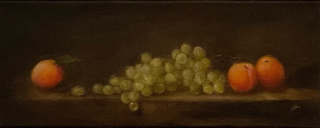 Judith Levin original painting: Grapes & Apricots8 x 20 inchesoil on canvas